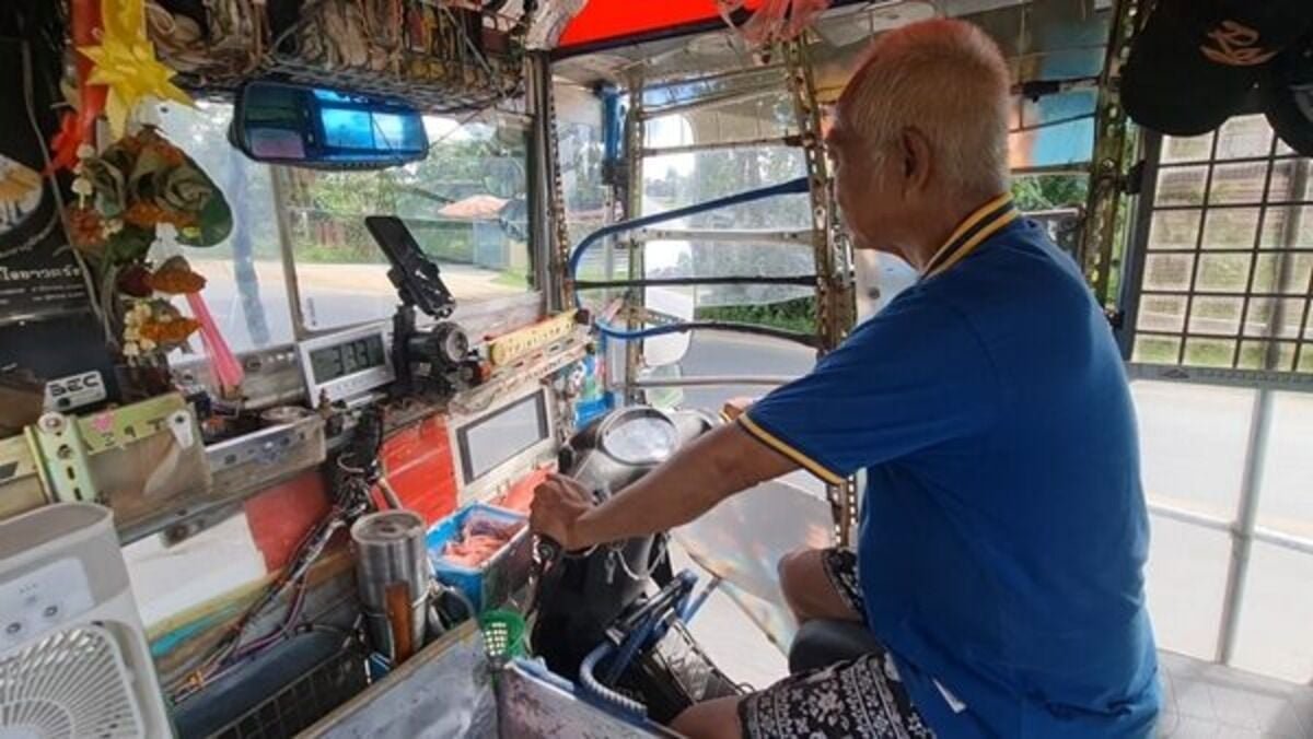 Photo gracieuseté de KhaoSod Un homme de 60 ans Homme thaïlandais s'embarqua pour un voyage périlleux, chevauchant son tricycle motorisé depuis Trang à Sukhothaï à travers forte pluie pendant quatre nuits…