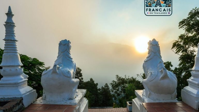 Perché sur les hauts plateaux embrumés du nord de la Thaïlande, le Wat Phra That Doi Mae Salong offre un havre de paix où spiritualité et panorama s'entremêlent pour élever…
